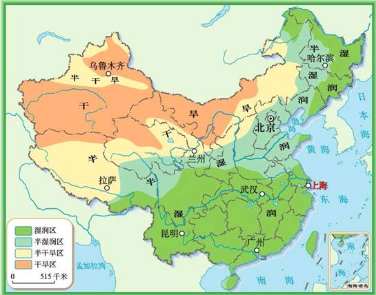 3) 气候复杂多样:我国既有多种多样的温度带,又有我种多样的干湿地区,加上我国地势高低悬殊,地形多样,更增加了我国气候的复杂多样性。